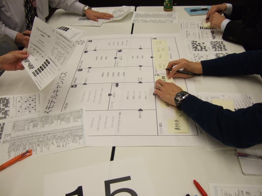 当日は、全国から100人近いメンバーが集まり、16のチームに分かれて熱いディスカッションとグループワークが繰り広げられました。ビジネスモデルデザインのコンテンツが同社の企業風土の変革、新規事業の創出に役立つことを願っております。